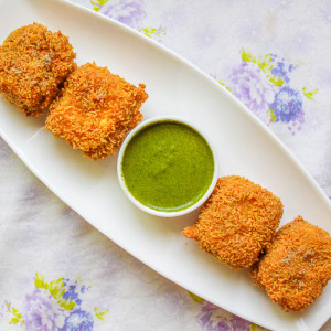 Deep fry the coated paneer cubes